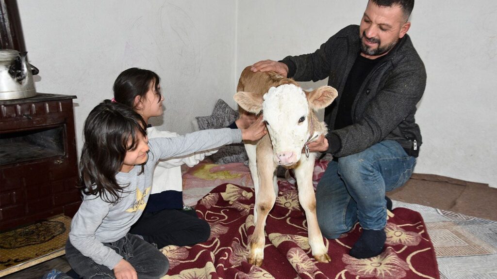 Tatvan ilçesi Yoncabaşı köyünde hayvancılıkla uğraşan Çetin Aygül, 4 gün önce dünyaya gelen buzağıyı sağlık durumunun iyi olmaması nedeniyle eve